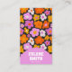 A Vintage retro colourful floral flowers liquid business card. That features a handmade groovy pattern boho abstract flower daisies .It has nostalgic seventies vibes and colours and groovy fonts. With modern customisable name and profession and QR code.