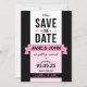 Elegant retro style save the date card with black-white and pink design. Personalise this announcement by adding your own custom details.