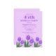 Retro tulip flower with vibrant typography purple background birthday invitation.