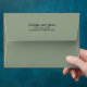 Add a touch of elegance to your mail with this modern return address wedding envelope, featuring a chic sage green background and delicate, simple script and serif fonts. Perfect for weddings, invitations, or personal notes. This beautiful, customisable envelope lets you effortlessly showcase your style. Personalise with your name and address for a look that's both graceful and elegant.