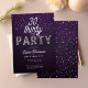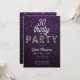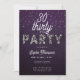 A simple, modern, elegant and chic 30th birthday party invitation template featuring a purple background, the word PARTY covered in rhinestones (simulated, not real stones, this is a digital effect), modern calligraphy script and typography in white. A chic, timeless design for a woman on her thirtieth birthday.