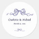 Elegant Ribbon & Bow Romantic White & Navy Wedding Classic Round Sticker