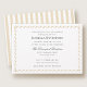 Celebrate in style with these elegant baby shower invitations! Featuring a chic ribbon border and playful candy stripes on the reverse, this design blends classic charm with a touch of whimsy. The formal layout and timeless typography create a refined look, while soft, versatile colours make it ideal for a traditional baby shower or any special celebration. Easily personalise the text to match your event details and theme — perfect for welcoming a little one in style. Template colours: gender-neutral gold colour and white, with dark grey lettering. Shop the collection for matching envelopes for sale online! Available as a printed invitation or a digital download.