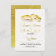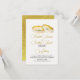 Elevate your special day with our custom gold wedding invitation featuring a pair of timeless, elegant gold rings and a gold background giving a luxury feel to the design.