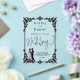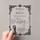 This elegant black-and-white acrylic wedding invitation is perfect for a modern wedding. The simple design features elegant black calligraphy, a chic black frame, and a bride-and-groom illustration on a clear transparent background. The invitation card includes the wedding details on the back instead of paying for a separate enclosure card.