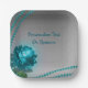 Elegant Romantic Blue Crystal Rose Pearls Chic Paper Plate