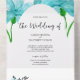 Elegant Romantic Blue Watercolor Iris All In One Invitation