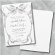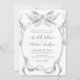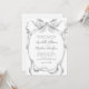 Light Grey Elegant Romantic Bow Ribbon Handwritten Whimsical Wedding Invitation. Add a touch of romance and whimsy to your wedding with this delicate and enchanting design, perfect for couples seeking a softer, more ethereal aesthetic. A graceful light grey watercolor bow with flowing ribbons drapes across the top of the invitation, creating an airy and romantic feel. The design is framed by an elegant oval that subtly directs attention to the wedding details, written in light grey handwritten script fonts for a harmonious and refined look.