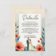 This elegant watercolor floral wedding enclosure card is perfect for a modern wedding. The romantic design features an elegant watercolor floral frame with a bride and groom illustration and black calligraphy on a white background.