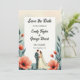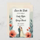 This elegant watercolor floral save the date invitation is perfect for a modern wedding. The romantic design features a sleek watercolor floral frame with a bride and groom illustration and black calligraphy on a white background.