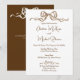 This Elegant Romantic Ribbon Wedding Invitation is designed with warm brown text ribbon accents on a white background. The front text includes: the Bride and Groom's Names, Wedding Date, Location, Address and Reception Details. The reverse text includes: Your RSVP details on a warm brown background with white text and white ribbon accent. To personalize, simply insert your text into our easy template, replacing the sample.