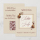 Elegant Romantic Rusty Rose Autumn Wedding Enclosure Card. Invite your guests in style with one of our elegant and romantic fall wedding invitations and this enclosure card. The beautiful design features a delicate gold geometric frame accented by moody watercolor bouquets of burgundy and rust orange roses against a warm cream background. This exquisite stationery includes a convenient QR code registry and RSVP information on the back, making it perfect for modern couples planning a sophisticated autumn celebration.