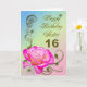 An elegant pink rose on a golden scroll work background. A beautiful card that will be sure to please your sister on her 16th birthday.