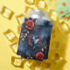 Elegant rose arrangement with golden foliage on a dark blue watercolor background. A stylish, decorative design featuring red roses, dark leaves, and golden accents against a deep blue, watercolor-like background. The delicate golden frame and balanced placement of the blossoms give the motif a refined, sophisticated appeal. Perfect for anyone who loves elegant floral art, romantic roses, and luxurious colour contrasts. Ideal for wall art, home decor, fashion accessories, and gifts with a touch of sophistication.