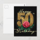 Elegant Rose Bloom and Luxe Golden 50th Birthday Postcard