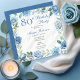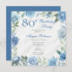 Elegant Rose Blue Floral Frame 80th Birthday Party Invitation