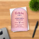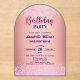 A modern design featuring elegant calligraphy on a pink metallic background with rose glitter. Customize the details for a chic Birthday Celebration.