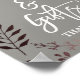 This elegant rose gold and gray cards and gifts sign is perfect for a classy wedding or bridal shower. The design features a stunning blush pink leafy frame on a dark grey background and is paired with a dazzling cursive font. The line of text at the bottom of the sign can be personalized with the date, the names of the bride and groom, or a short message like "Thank you".