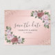 Elegant rose gold and blush pink floral wedding save the date postcard featuring blush pink roses and rose gold glitter corners. Matching items available.