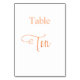 The table number is written with an elegant hand lettered style script. Rose gold letters, white background. This table number is also available in black.