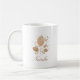 A simple and elegant coffee mug featuring rose gold leaves, and a customisable section underneath for your name in beautiful script lettering.