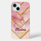 Chic elegant girly faux Glitter rose gold geometric iPhone 15 Case. To make it extra special, it is also monogrammed and personalised with name or initials or any text you like, click the "customise further" link and use the design tool to modify the design if you like.