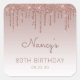 Elegant Rose Gold Glitter Drip 80th Birthday Party Square Sticker