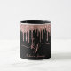 Elegant, Modern Blush Pink Rose Gold Glitter Drips 2 Monogram Script on black custom personalised name monogrammed mug. Featuring a faux glitter dripping frame, large double hand lettered monogram script cursive font with swashes (large size initials) and a full name in blush pink colour on black background. Easy to personalise it. Great feminine girly gift for girlfriend, mother, birthday, wedding, bridal shower, sweet 16 birthday party and baby shower, business, home office, professional work and for anyone who like pretty glam things.