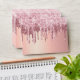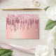 Modern envelop design. Faux pink & copper rose gold dripping glitter metallic texture.