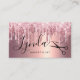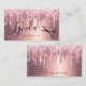 This gorgeous hairstylist business card design features faux pink & copper rose gold dripping glitter metallic texture, black scissors and elegant calligraphy font.