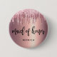 Elegant rose gold glitter drips maid of honour 6 cm round badge