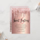 This modern invitation design features faux copper rose gold dripping glitter metallic texture and elegant calligraphy font.
