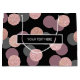Cute and stylish design featuring large faux rose gold glitter, pink and grey confetti dots, black background.