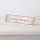 Girly Glam Blush Rose Gold Glitter Metallic Monogram Name Signature Script Custom Personalised Desk Name Plate. These design featuring your first name in a pretty handlettered style swash tail font typography on blush pink rose gold faux metallic foil with glam sparkle glitter border. These are easy to customise and can be used as a beauty business, professional work, business, employee and for anyone who loves glamourous luxury style.
