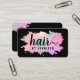 Modern business card with gradient faux rose gold, green & purple texture, scissors, black background and elegant calligraphy font.