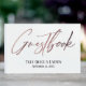 This simple design features an elegant modern handwriting font used to create an image that reads "Guestbook". The graphic was embellished with a faux-metallic rose gold finish. Use the template fields to add your personal details. The background can be changed to any colour you prefer. // 151 //