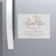 Notify guests of your upcoming destination, beach, or tropical island wedding with these beautiful summer floral save the date magnets featuring a faux rose gold foil hibiscus flower illustration on a soft pastel grey background. Elegant grey script and block lettering displays your wedding details (names, wedding date, location, and website).