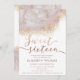 Simple elegant rose gold chic marble agate calligraphy sweet 16 birthday party invitation design.
