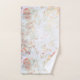 On this stylish towel set is a rose gold marble design on a light pastel back round. Elegant classy chic vibes.