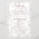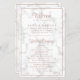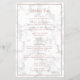 Modern and elegant wedding program with your details in a faux rose gold, surrounded by a border, over a grey and white marble background. The headers are in an elegant script font. Add your ceremony events to the front and your wedding party to the back. This chic and stylish design is great for a celebration in the winter. These cheap wedding programs are printed on sheets of paper for a budget friendly option.