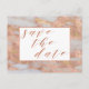 Elegant Rose Gold Marble Script Save The Date Announcement Postcard