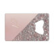 Open bottles in style with this Elegant Rose Gold Monogram Credit Card Bottle Opener, featuring a shimmering rose gold glitter design with a soft blush background. Personalised with your initial, this slim stainless steel opener fits easily into wallets, pockets, or purses, making it both practical and chic. A thoughtful personalised gift for weddings, anniversaries, graduations, holidays, or bachelor/bachelorette parties, it’s the perfect blend of modern elegance and everyday function.