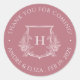 Rose gold monogram crest thank you sticker. This envelope seal is simple, timeless it features a floral wedding monogram. It is personalised in elegant typography.
