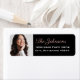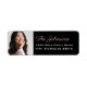Simple and elegant custom address label design features a senior photo of your graduate with blush pink / rose gold and white return address text and black background. Colours can be customised.