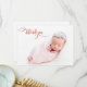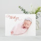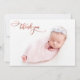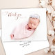 Modern Chic Elegant Calligraphy Rose Gold Script Newborn Baby Photo Thank You Birth Announcement Card. Features a pretty "thank you" text in a handwritten calligraphy swash tail font script in FAUX pink rose gold foil. Pre-made personal message at the back side. Great for baby girl or baby boy. Easy to personalise with your baby photo and details.