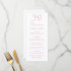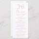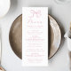 Add a romantic and refined touch to your wedding reception with this rose pink bow wedding menu. The design features a delicate hand-drawn bow in a warm rose hue, paired with "Menu" written in elegant calligraphy at the top. Personalise it with your names, wedding date, and menu selections to match your special day. This pink tone offers a sophisticated pop of colour, making it ideal for modern romantic weddings, vintage-inspired themes, or celebrations with rich floral palettes.