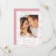 Announce your wedding date with sophistication using this rose pink photo save the date card. The front highlights your vertical engagement photo framed in white, layered over a rose pink and white chinoiserie floral pattern that feels romantic and classic. “Save the Date” appears in graceful calligraphy, with your names, wedding date, and location presented below in serif lettering. The back features your monogram initials surrounded by an intricate white crest of chinoiserie and baroque motifs on a rose pink background for an elegant finishing touch.