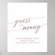 This elegant rose gold calligraphy guess how many kisses poster is a fun activity for a fall bridal shower. Fill a jar with Hersey's Kisses and have your guests guess how many candies are in the jar. The closest answer wins a prize! The blush pink design features a minimalist card decorated with romantic and whimsical faux rose gold foil typography. Matching guessing game cards are sold separately.
