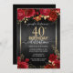 Elegant Faux gold confetti highlights on the top and bottom border. Bright deep red roses with gold floral accents. All text is adjustable and easy to change for your own party needs. Great elegant birthday template design.