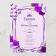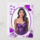 This elegant purple quinceanera invitation has a purple tiara crown, purple roses, and purple butterflies with a personalizable template to create your own message. The invitation template is customizable in the listing editor and is also available as a digital download that's printable after you personalize it.
